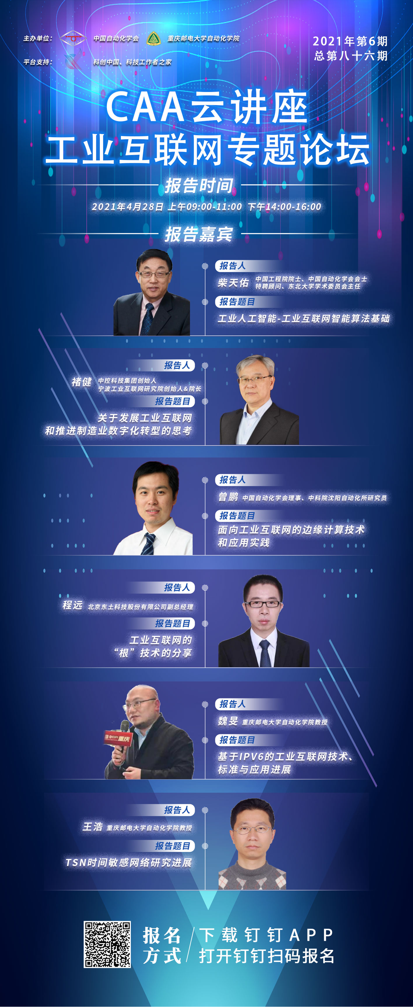 由中國(guó)自動(dòng)化學(xué)會(huì)和重慶郵電大學(xué)自動(dòng)化學(xué)院聯(lián)合舉辦的CAA云講座——工業(yè)互聯(lián)網(wǎng)專題論壇,將于2021年4月28日上午9:00-11:00、下午14:00-16:00舉行,精彩內(nèi)容,不容錯(cuò)過(guò)!