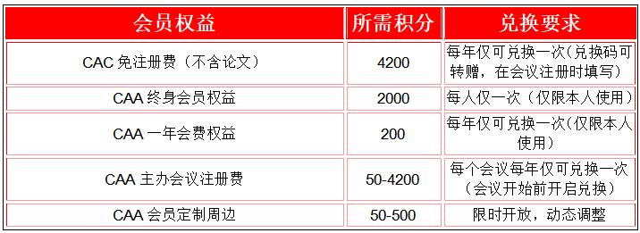 CAA積分兌換指南