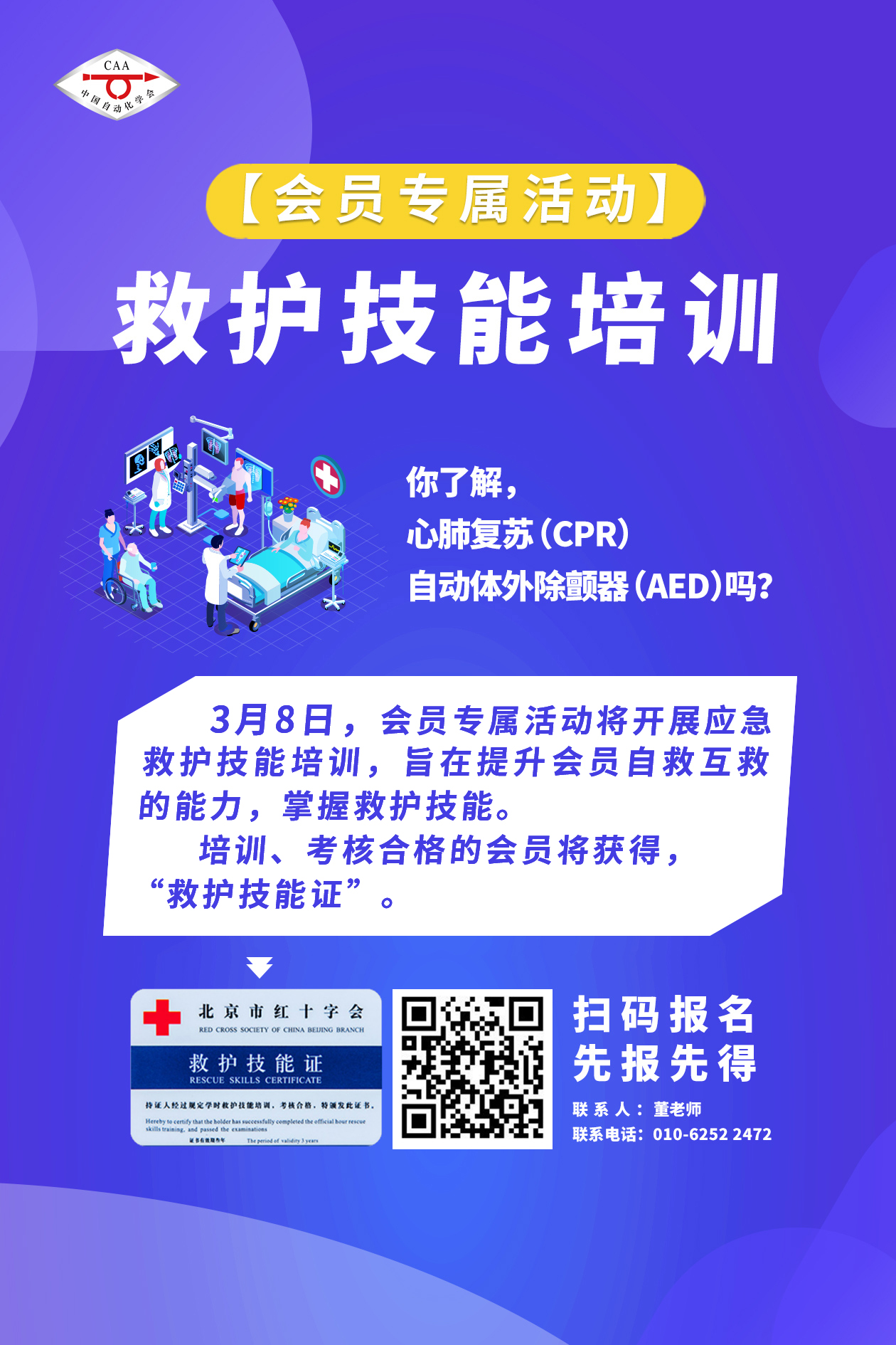 3月8日,會員專屬活動將開展應急救護技能培訓,旨在提升會員自救互救的能力,掌握救護技能。