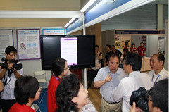 中國自動化學會在本次展會上隆重展示了“3D打印”、“紫冬口譯”和“機器人”項目,以高度的自主研發知識產權和國產化程度吸引了眾多參會觀眾的關注,特別是中國科協張勤書記、國際聯絡部張建生部長、組織人事部朱雪芬副部長、發展研究中心主任、調宣部王康友副部長等一行人親臨指導,饒有興趣地聆聽三個項目的技術原理,與學會辦公室負責同志和現場技術人員展開熱烈的討論。