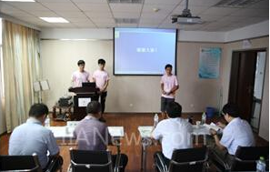 激烈的答辯現場,面對評委老師的高標準嚴要求,各位學生有勇有謀,不甘示弱,個個充滿斗志的PK著。特別值得一提的是今年大賽邀請了許繼集團有限公司副總工程師李瑞生和南京中電熊貓平板顯示科技有限公司副總經理顧葆華擔任評委,從企業實際應用角度對同學們的作品打分。
