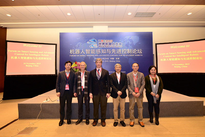 為貫徹落實習總書記在2014年兩院院士大會講話中的重要指示精神,積極推動我國機器人技術與產業的跨越發展,中國科學技術協會、工業和信息化部和北京市人民政府于2015年11月23日至25日在國家會議中心(北京)共同主辦了主題為“協同融合共贏,引領智能社會”的2015世界機器人大會。大會由2015世界機器人論壇、2015世界機器人博覽會、2015世界青少年機器人邀請賽三大活動組成。中國自動化學會在繼今年春天召開的2015年國家機器人發展論壇的基礎之上,在中國科協的指導下,充分發揮自身學科優勢和人才優勢,于2015年11月24日承辦了“機器人智能感知與先進控制”專題論壇。本次論壇安排了6個特邀主題報告,并設置了互動交流環節,邀請了來自瑞士、美國、韓國的知名學者與中國學者共同探討有關機器人智能感知與先進控制方面的最新進展和研究成果,會場更是被熱情高昂的參會者擠得水泄不通,反響十分熱烈,整場論壇座無虛席,氣氛持續高漲。與此同時,學會還通過微博平臺第一時間對論壇現場進行了直播。