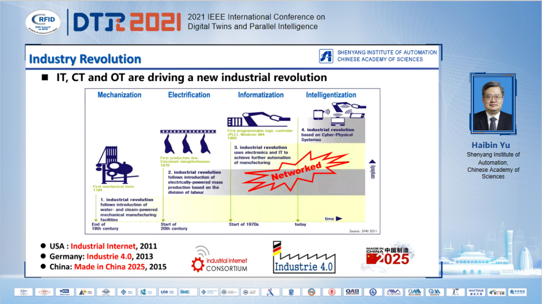中國自動化學會副理事長、中國工程院桂衛華院士致辭,桂衛華院士表示數字孿生與平行智能的初衷是綜合運用先進的數據科學、信息技術和智能管控技術以實現具體的數字影像,繼而高效利用以達到系統智能。中國乃至世界的數字化轉型、革新已經開始,DTPI科技集最新的信息技術和工業技術于一身,將在產業中釋放出巨大的生產力,促成生產力的飛躍進步,同時在產業運行的過程中,將會變革性的改變、改善行業中的生產關系,整體上將以人為中心的傳統行業,變成人、機、物、智混編的行業,并依托系統的數字影像進行有效、精細的管控,數字孿生與平行智能將對各種產業生產資料、生產管理和生產關系進行變革,產生顛覆性、核心性的改變,這是這門學科在新數字時代的新的使命。