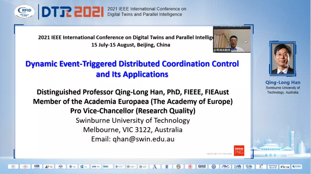 澳大利亞斯威本科技大學副校長和特聘教授韓清龍教授發表關于“動態事件觸發的分布式協調控制及其應用”的主題報告,報告中詳細介紹了動態事件觸發的分布式協調控制的最新研究:在分布式協調控制的背景下引入了動態事件觸發調度的動機。然后詳細討論了動態事件觸發的分布式協調控制技術的設計和實現問題。并且還舉例說明了動態事件觸發分布式協調控制在微電網和自動化車輛領域的兩種應用。