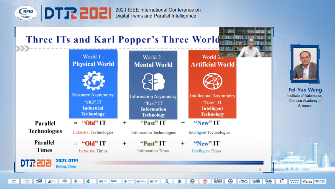 2021年8月15日,由IEEE射頻識別專委會、中國自動化學會主辦,中國科學院自動化研究所、中國科學院自動化研究所復雜系統管理與控制國家重點實驗室、武漢大學電氣與自動化學院、北京交通大學、青島智能產業技術研究院、懷德海學院等單位承辦的首屆數字孿生與平行智能大會會議在北京成功舉辦!與此同時,會議采用“混合分布式會議”的形式,面向全球同步直播,累計參會人數高達6000人。