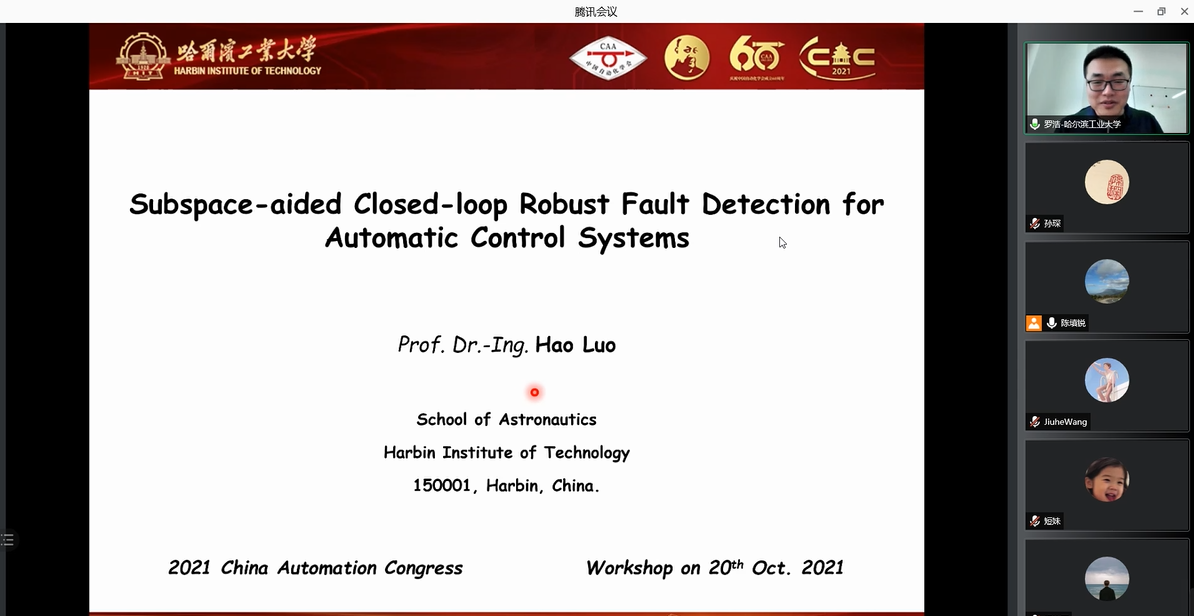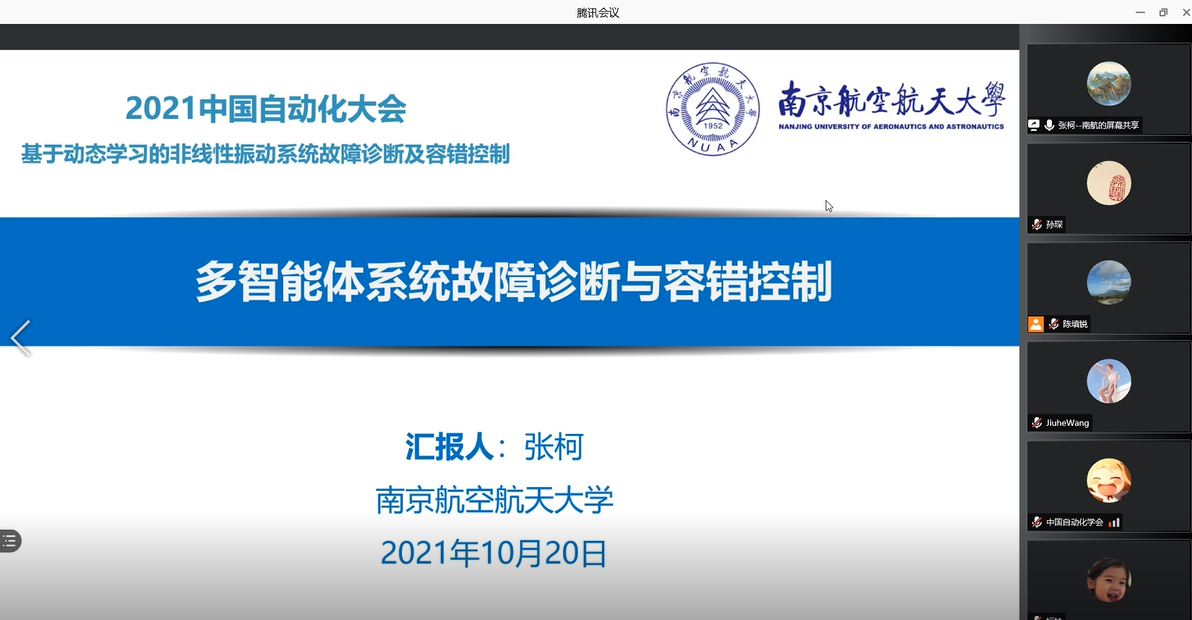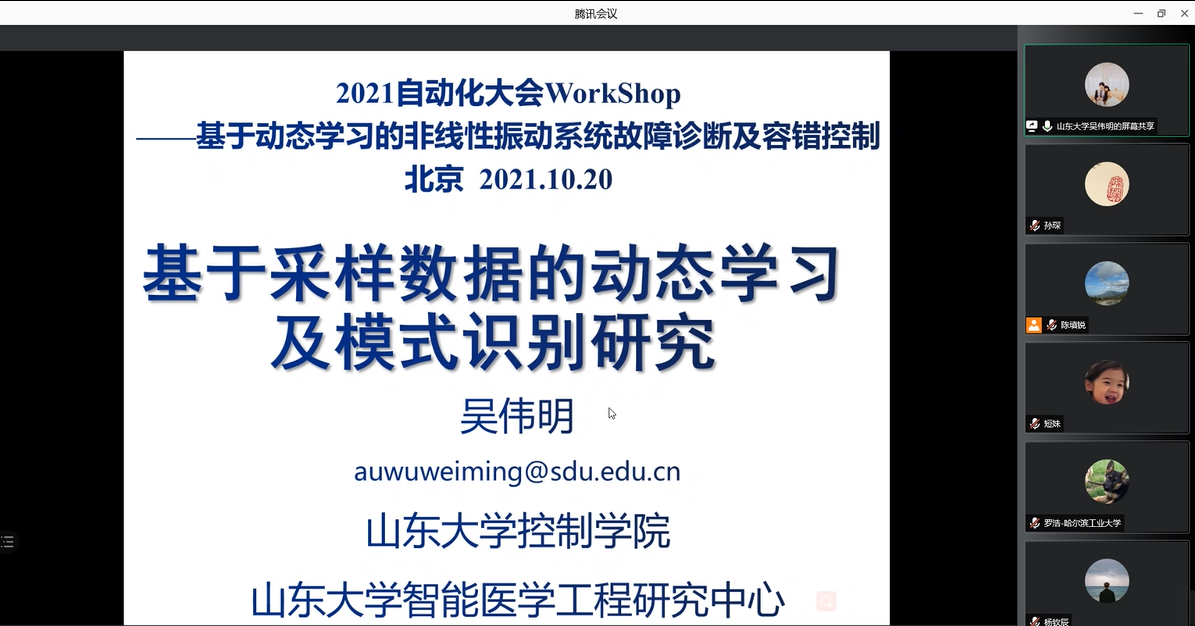 2021年10月20日,為慶祝中國自動化學會成立六十周年,中國自動化大會Workshop“基于動態學習的非線性振動系統故障診斷及容錯控制” 采用線上騰訊會議的方式成功召開。
