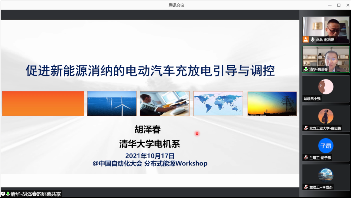 會議間歇,趙向陽副教授對本次workshop會議進行了簡單說明,指出本次會議是為慶祝中國自動化學會六十華誕及錢學森誕辰110周年所舉辦的中國自動化大會會前會,屬于中國自動化大會的一部分。同時就會議主題“打造落地的智能化的分布式能源,實現兩碳戰略”及中國自動化學會與智能分布式能源專委會概況進行了簡要說明。