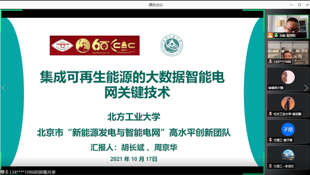 北方工業大學胡長斌副教授和周京華教授,匯報題目為“集成可再生能源的大數據智能電網關鍵技術”,從集成可再生能源的智能電網關鍵技術出發,深入探討高比例新能源系統慣量低、多能流交互作用、源網荷頻繁互動、耦合協調運行困難、運行場景復雜、用戶定制化需求高等核心難題,重點介紹了新能源微電網在發/輸/配/用系統中的關鍵作用,分析和講述了微電網物理系統穩態分散與動態互聯機理建模等問題。并對團隊的應用案例進行了介紹,展示了團隊在微電網應用方面的具體成果,展望了未來微電網運行控制及未來能源高效利用的發展趨勢。趙向陽副教授贊揚了該團隊作為北京市新能源發電與智能電網高水平創新團隊的實干創新力量,從設備底層開發到系統控制、從科研到教學領域等做了很多踏實工作,并希望團隊攻克更多技術難題。