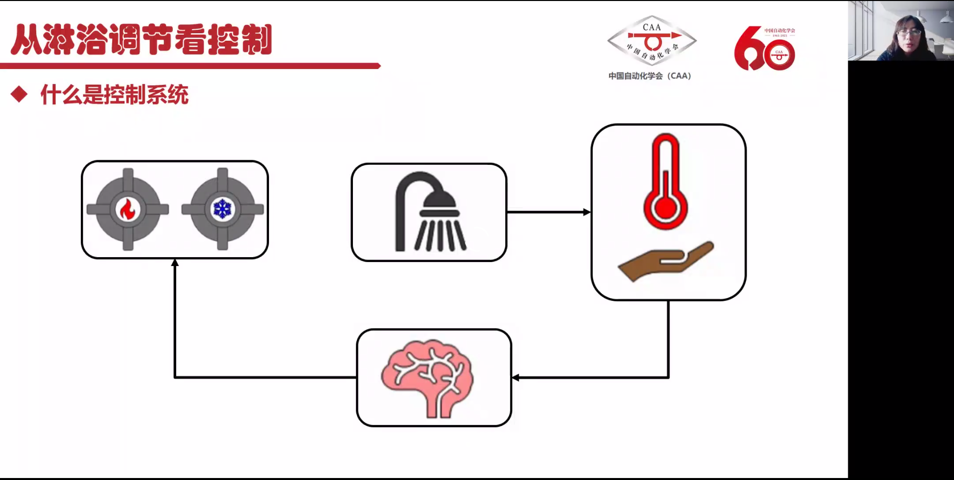 首先,吉林大學郭洪艷教授作題為“從淋浴調節看控制”的報告。郭洪艷教授從淋浴中的水溫調節入手,介紹了控制系統的基本理論和組成要素,通過列舉生活中的實例,讓孩子們掌握控制器、傳感器、執行器等概念。