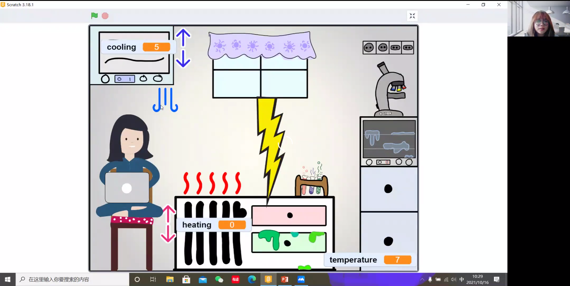 吉林大學通信工程學院博士劉嫣然作題為“‘星球大戰’之外星人溫度控制”的報告。劉嫣然向孩子們講述“星球大戰”,在趣味故事背景下,引入控制理論的基本知識,通過應用Scratch編程,實現對外星人溫度的自動控制,讓孩子們動手操作,在實際應用中理解控制。