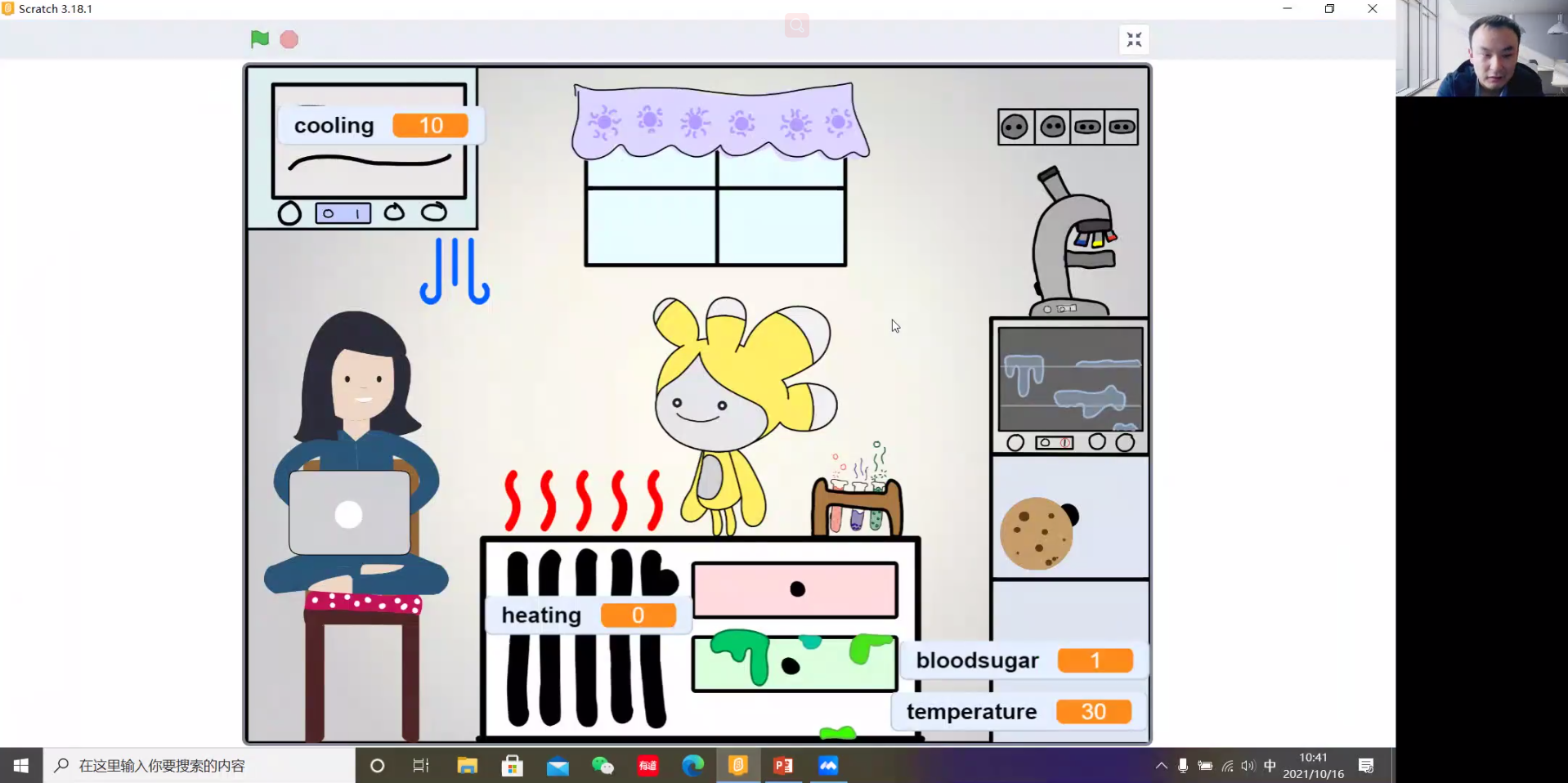 吉林大學助理研究員劉俊博士作題為“‘星球大戰’之外星人血糖控制”的報告。劉俊博士在上一個報告的基礎上,提升了游戲中控制的難度,加強了孩子們對Scratch軟件使用的熟練程度,并且結合對溫度和血糖的同時控制,引出了最優控制的問題。
