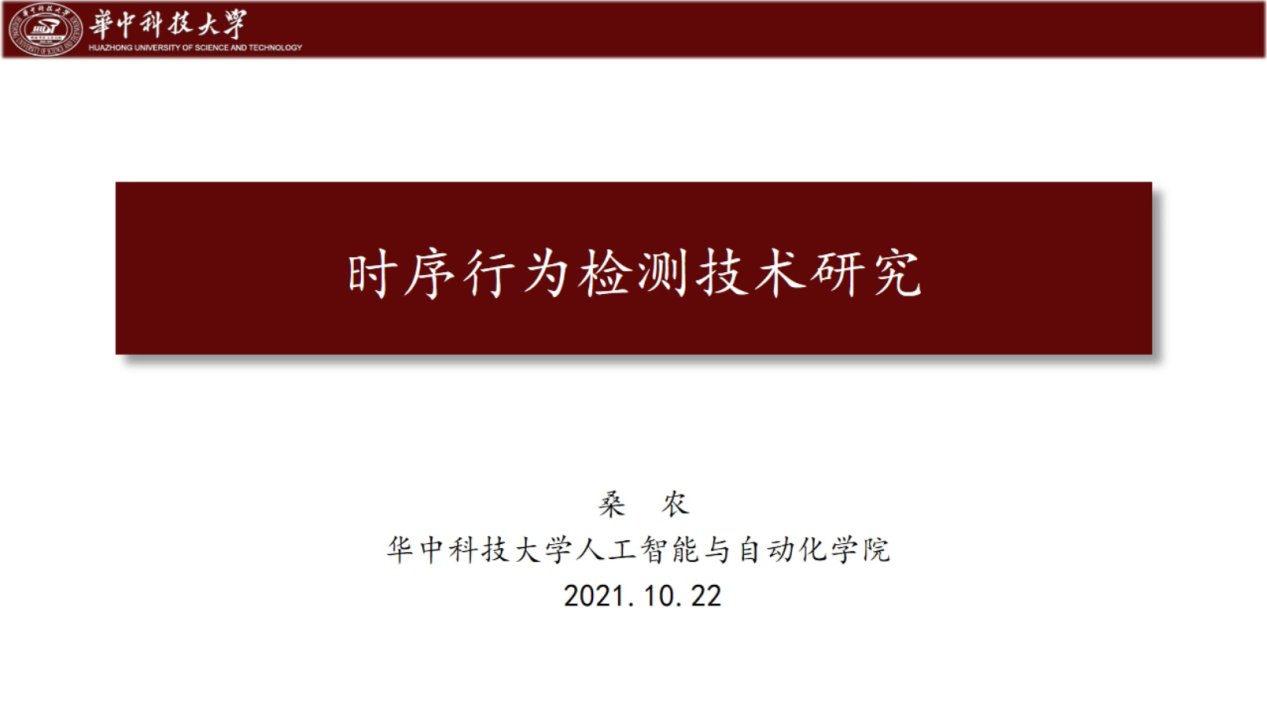 桑農(nóng)教授的報(bào)告題目是“時(shí)序行為檢測(cè)技術(shù)研究”。桑教授首先介紹時(shí)序行為檢測(cè)背景及意義,包括該技術(shù)的在多個(gè)領(lǐng)域的實(shí)際應(yīng)用及相關(guān)數(shù)據(jù)集,然后介紹若干個(gè)目前時(shí)序行為檢測(cè)的前沿方法,包括傳統(tǒng)的方法和基于深度學(xué)習(xí)的方法。桑教授詳細(xì)介紹他們團(tuán)隊(duì)研究提出的時(shí)序邊界微調(diào)算法、將自監(jiān)督引入半監(jiān)督時(shí)序行為檢測(cè)的方法。最后在總結(jié)和展望中,桑教授指出設(shè)計(jì)輕型網(wǎng)絡(luò)以提高檢測(cè)效率、有效界定檢測(cè)邊界和半監(jiān)督及自監(jiān)督應(yīng)用是以后的研究方向。