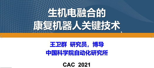 最后,由中國科學院自動化研究所研究員、博導王衛群作題為“生機電融合的康復機器人關鍵技術”的報告。康復機器人技術研究涵蓋神經科學、機械工程、控制與信息、臨床醫學等多個學科,是一個高度綜合的領域,還有很多技術難點亟需突破。王衛群研究員在報告中介紹了典型的康復機器人平臺,探討康復機器人研究面臨的問題和技術挑戰,重點闡述了課題組在解碼人體運動意圖與主動人機交互方面的研究進展以及樣機研制的初步成果。