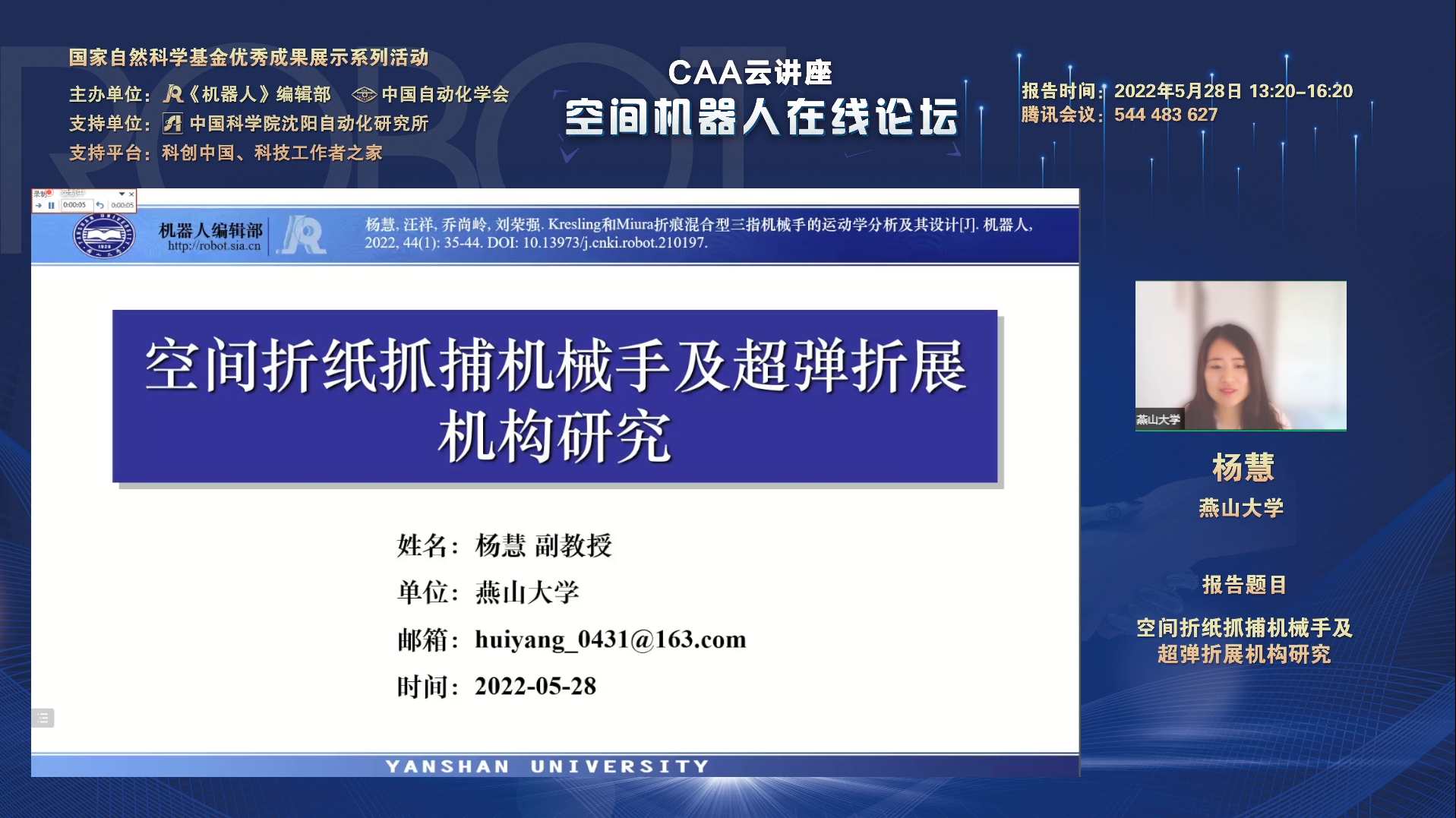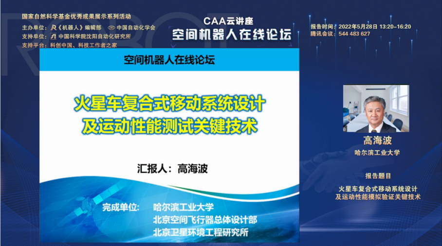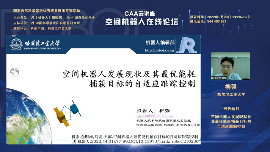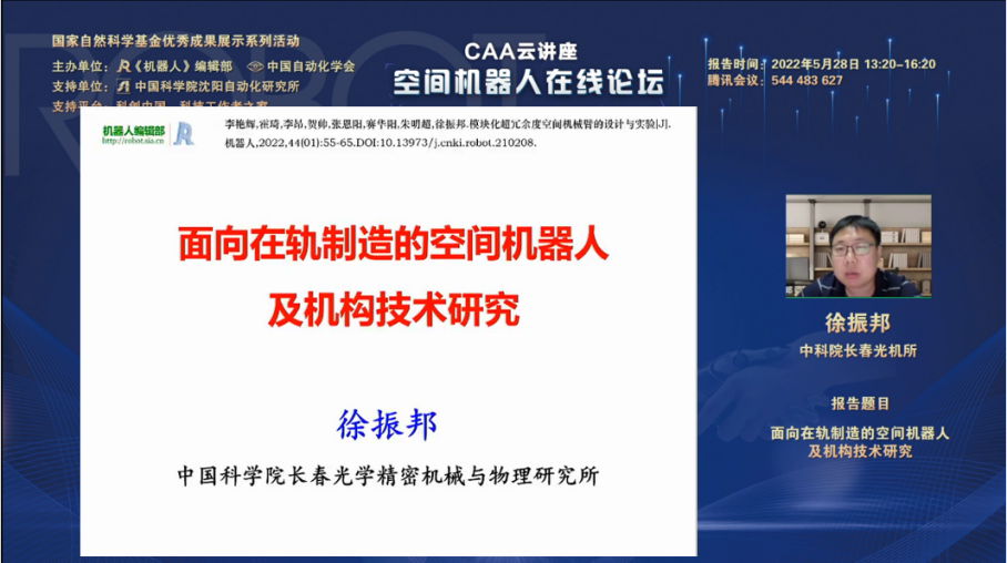 5月28日,CAA云講座“空間機器人”在線論壇成功舉辦,本期云講座由中國科學院沈陽自動化研究所和《機器人》編輯部共同組織7位專家各抒己見,通過騰訊會議、CAA會議小程序、CAA官方視頻號、蔻享平臺、知乎及科技工作者之家等平臺進行全程直播,播放量超4萬人次。