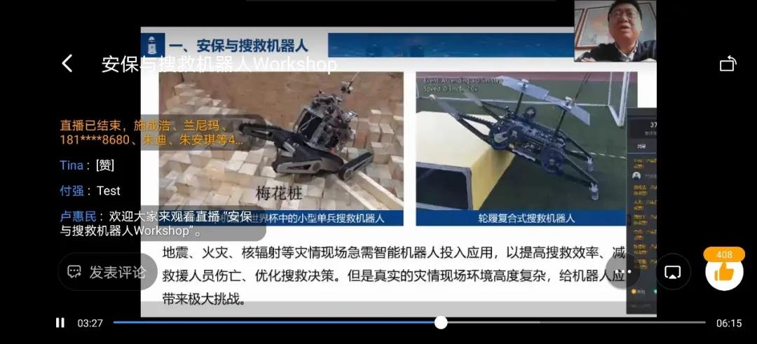 2020年11月3日下午,由中國自動化學(xué)會指導(dǎo),中國自動化學(xué)會機器人競賽工作委員會主辦的“安保與搜救機器人”研討會在自動化大會前夕成功舉辦。