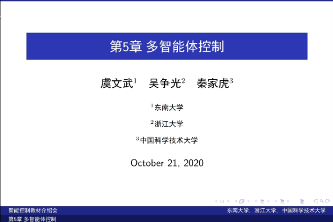 殷翔副教授首先帶來了題為《基于形式系統與邏輯的智能控制》的報告,報告介紹了形式化控制方法的基本概念、發展歷程、章節內容和未來展望。魏慶來研究員在《計算智能控制系統》中詳細介紹了模糊控制系統、神經網絡控制系統、進化控制系統和專家控制系統。虞文武教授報告題目為《多智能體控制》,介紹了多智能體控制的背景,并詳細講解了線性多智能體系統控制、多智能體系統事件觸發控制、多智能體系統協同抗干擾控制。