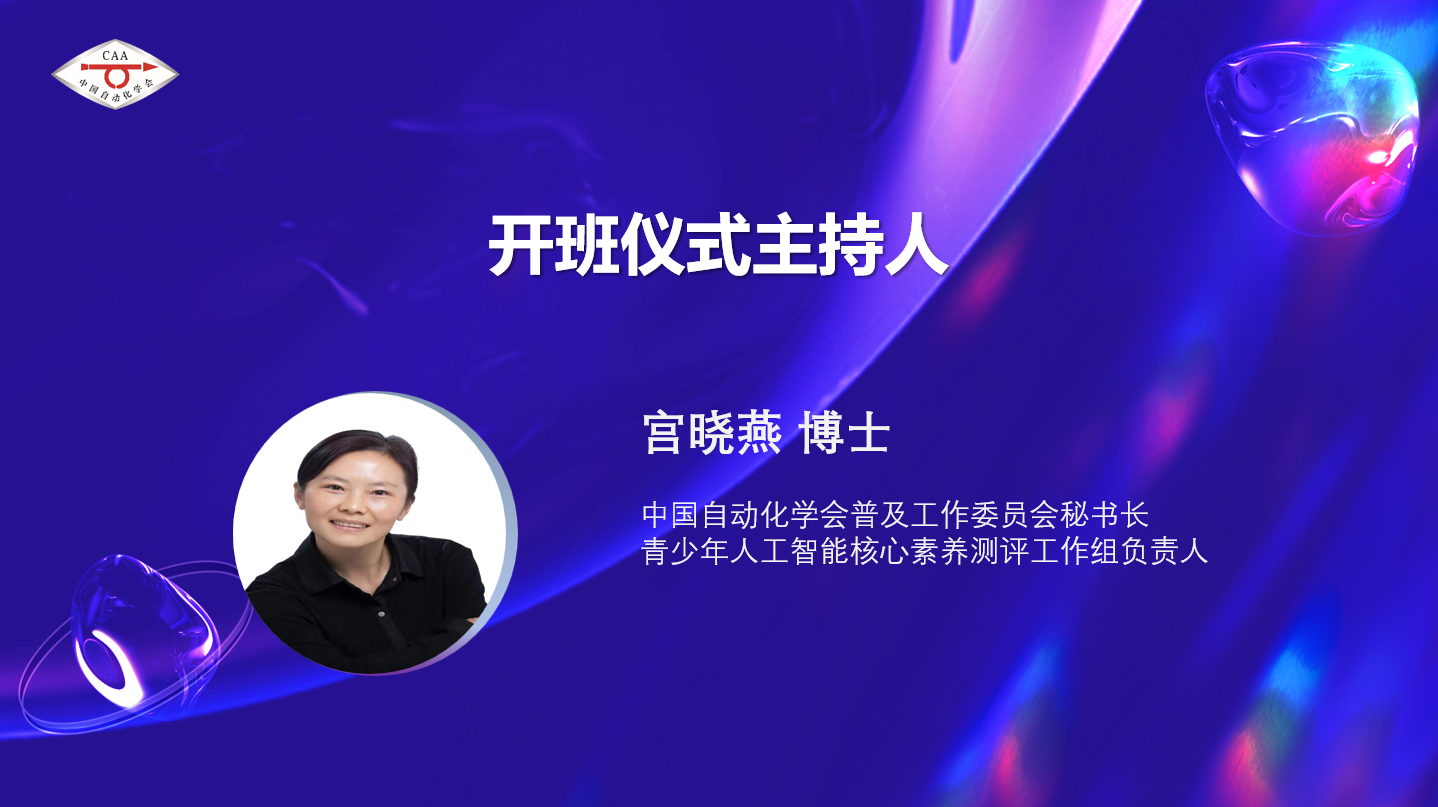 中國自動化學會普及工作委員會秘書長、青少年人工智能核心素養(yǎng)測評工作組負責人宮曉燕博士主持了開班儀式,班主任馮濤老師介紹了培訓班的課程和時間安排,隨后中國自動化學會普及工作委員會副主任委員、青少年人工智能核心素養(yǎng)測評工作組組長劉希未博士開啟了本次培訓班的第一課——他為學員們做了主題為《核心素養(yǎng)視野下的青少年人工智能教育》的專家講座。