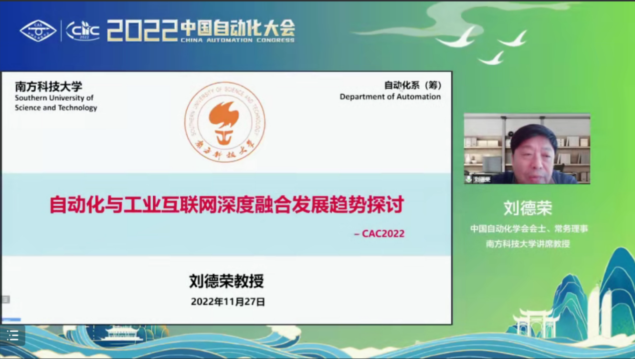 歐洲科學院院士、中國自動化學會常務理事、南方科技大學講席教授劉德榮,作題為“自動化與工業互聯網深度融合發展趨勢探討”的大會報告。報告圍繞平行控制、云控制、網絡化控制、自適應動態規劃等理論展開,討論了未來智能制造自動化與工業互聯網的高度融合發展在社會治理、公共服務、經濟金融、自動駕駛、安全、教育、投資等領域的巨大潛力。
