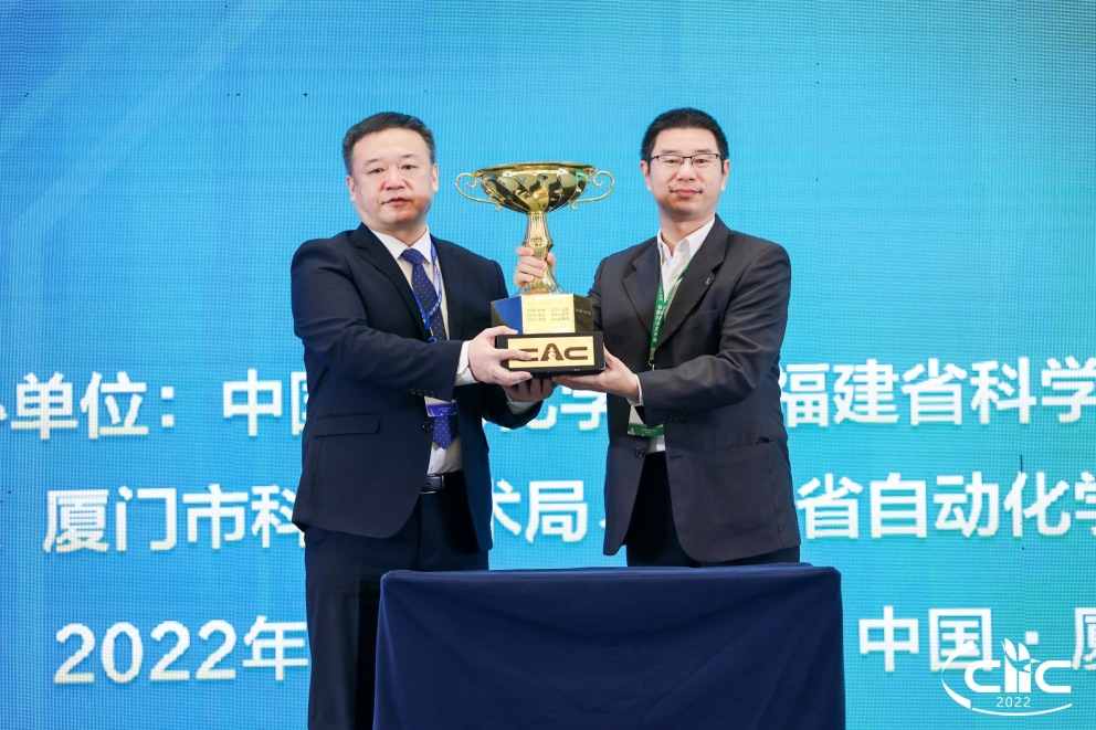 大會同期進行了“CAC杯”交接儀式,2022中國自動化大會組委會代表——華僑大學機電及自動化學院院長黃輝,將沉甸甸的“CAC杯”鄭重轉交給2023中國自動化大會組委會代表——重慶郵電大學袁榮棣教授。2022中國自動化大會將于2023年11月在山城重慶召開,續寫自動化大會新篇章。