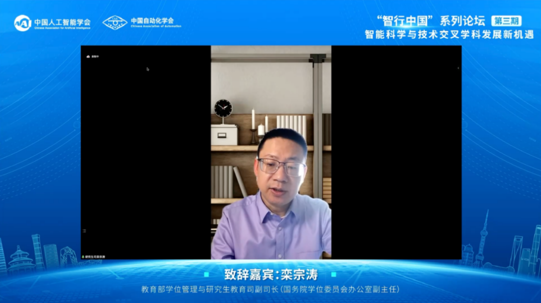 教育部學(xué)位管理與研究生教育司副司長、國務(wù)院學(xué)位委員會辦公室副主任欒宗濤在致辭中強(qiáng)調(diào):全球科技創(chuàng)新進(jìn)入空前密集活躍期,新一輪科技革命和產(chǎn)業(yè)變革正在重構(gòu)全球創(chuàng)新版圖、重塑全球經(jīng)濟(jì)結(jié)構(gòu)。我國正處于工業(yè)經(jīng)濟(jì)向數(shù)字經(jīng)濟(jì)、智能經(jīng)濟(jì)邁進(jìn)的關(guān)鍵時期,人工智能日益成為引領(lǐng)。這一科技革命和產(chǎn)業(yè)變革的戰(zhàn)略性技術(shù)成為推動中國經(jīng)濟(jì)轉(zhuǎn)型、產(chǎn)業(yè)升級的重要推動力量。國務(wù)院學(xué)位委員會,教育部積極貫徹落實黨中央、國務(wù)院部署要求,大力推進(jìn)人工智能相關(guān)學(xué)科專業(yè)建設(shè)。欒司長希望論壇對交叉學(xué)科內(nèi)涵、交叉學(xué)科邊界和處理好學(xué)科之間關(guān)系等問題進(jìn)行深入討論。