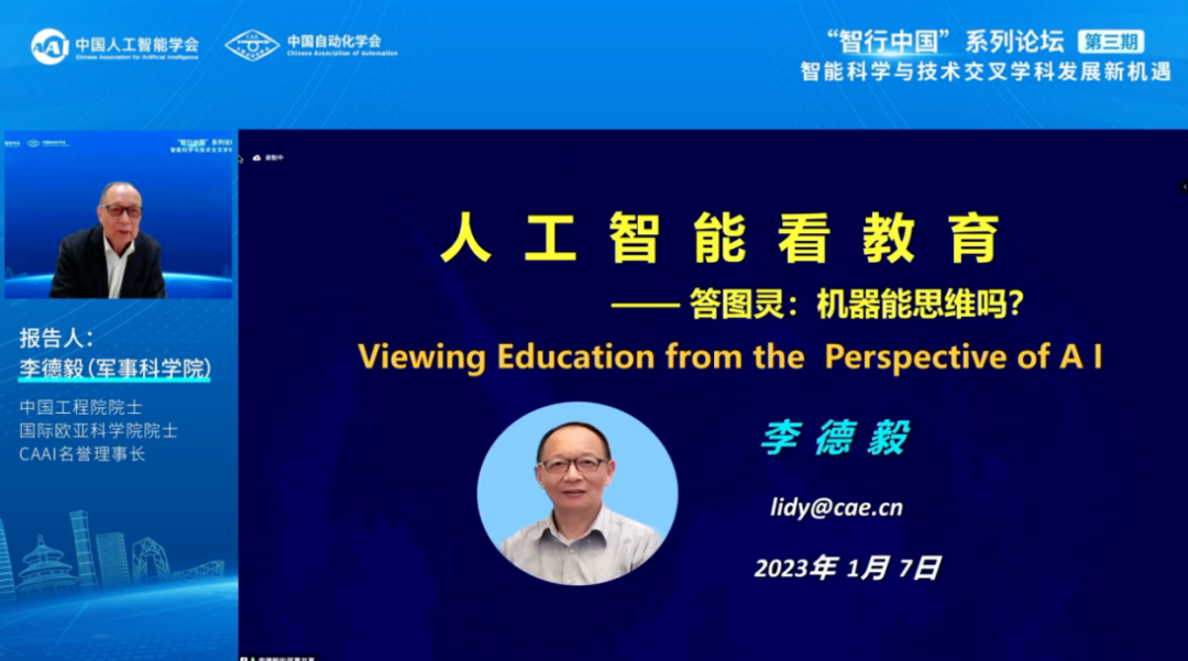 中國工程院院士、歐亞科學(xué)院院士、中國人工智能學(xué)會和中國指揮與控制學(xué)會名譽(yù)理事長李德毅發(fā)表題為“人工智能看教育——答圖靈:機(jī)器能夠思維嗎?”的主旨報告。李德毅院士表示,人類智能始于語言,人工智能始于文字,人類最偉大的智慧是發(fā)明了教育,智能植根于教育,教育讓人類智能的發(fā)展從“現(xiàn)在進(jìn)行時”變?yōu)椤艾F(xiàn)在完成時”。智能機(jī)器里的物質(zhì)和能量是物理層面的真實存在,結(jié)構(gòu)和時間是認(rèn)知層面的抽象思維。結(jié)構(gòu)和時間寄生在物質(zhì)和能量上,構(gòu)成硬構(gòu)體;機(jī)器中信息是大量的軟構(gòu)體,體現(xiàn)了精神世界,可以寄生在硬構(gòu)體或者其他軟構(gòu)體之上,有虛有實,虛實結(jié)合,可自舉和自我復(fù)用,始終至少存在下一個時間周期,使得機(jī)器能再去“想”,其秩序顯示出維持自身思維和產(chǎn)生有序事件的能力,人的思維和機(jī)器的思維在數(shù)學(xué)上是同構(gòu)的,在物理上是同源的,都賴負(fù)熵為生。這樣一來,物質(zhì)和信息沒有鴻溝,科技和人文不再二元,這就回答了圖靈 “機(jī)器能夠思維嗎?”的天問。智能機(jī)器的誕生沖擊教育的全方位、全要素,從教“書”,演進(jìn)到教“學(xué)”,再進(jìn)一步演進(jìn)到教“育”。智能時代教育的精髓是培育思維的想象力和創(chuàng)造力,人類思維的本質(zhì)是抽象、聯(lián)想和交互,機(jī)器亦然。機(jī)器用軟構(gòu)體延伸和拓展了人的思維,不但擁有記憶智能和計算智能,把人從繁重的、重復(fù)性勞動中解脫出來,還擁有具身交互智能,更重要的是,機(jī)器可以暴力思維,人和機(jī)器互教互學(xué),優(yōu)勢互補(bǔ),形成迭代的智能。智能時代的教育改革問題已經(jīng)迫切地擺在全人類的面前,讀書改變一個人,教育改變?nèi)祟悾屛覀冇舆@場學(xué)習(xí)的革命!