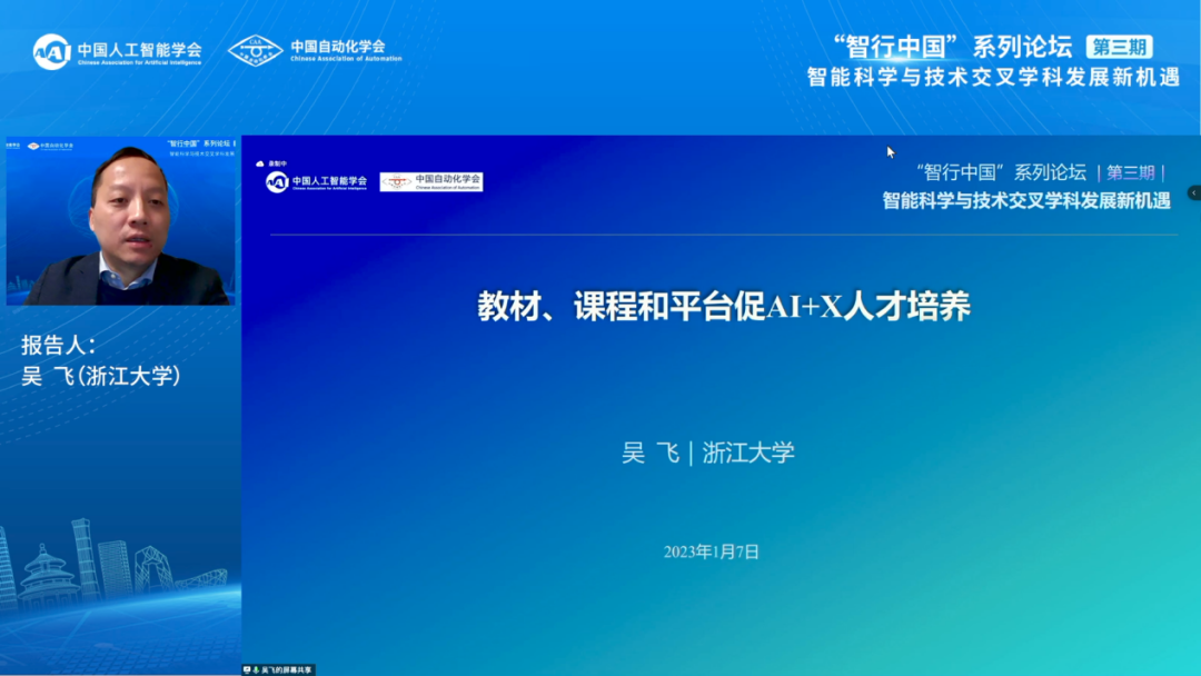 中國人工智能學(xué)會教育工作委員會主任委員、浙江大學(xué)人工智能研究所所長吳飛主持