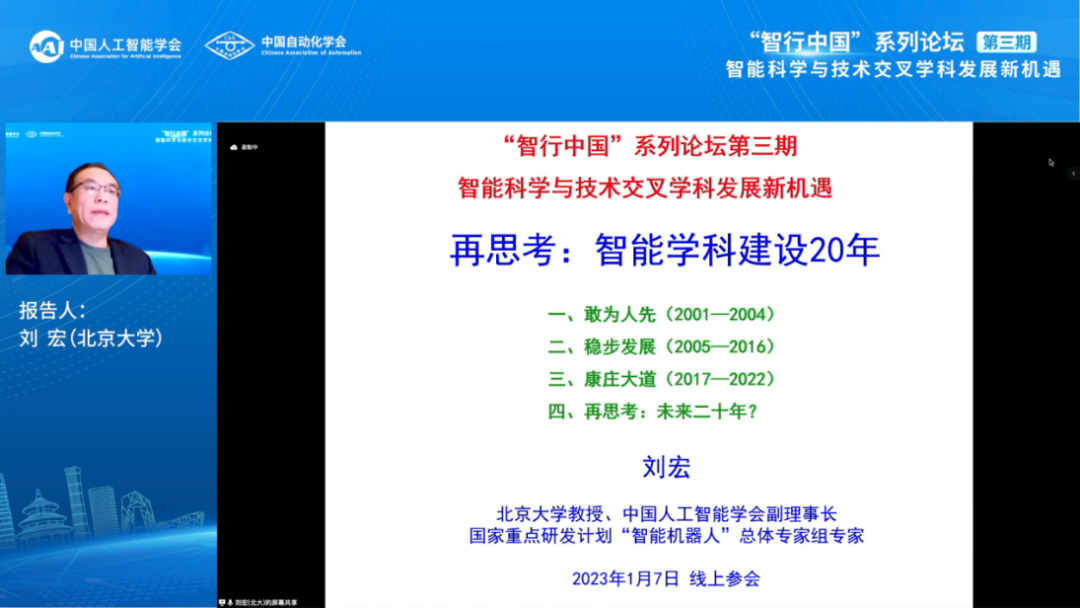 2023年1月7日,“智行中國”系列論壇第三期成功舉辦。本次論壇以“智能科學(xué)與技術(shù)交叉學(xué)科發(fā)展新機(jī)遇”為主題,邀請20余位人工智能領(lǐng)軍科學(xué)家、教育家、企業(yè)家及高校學(xué)者,圍繞智能科學(xué)與技術(shù)交叉學(xué)科建設(shè)、人才培養(yǎng)和智能科學(xué)與技術(shù)交叉學(xué)科研究前沿與應(yīng)用等問題展開討論,共同思考學(xué)科交叉和交叉學(xué)科等發(fā)展新機(jī)遇。本次線上論壇通過多個線上平臺共同直播,累計在線觀看人次達(dá)66.91萬。
