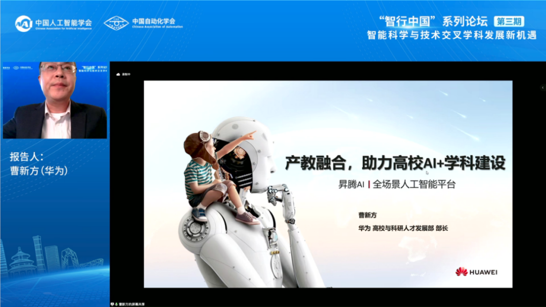華為計算產(chǎn)品線高校與科研人才發(fā)展部部長曹新方發(fā)表題為“產(chǎn)教融合,助力高校AI+學(xué)科建設(shè)”的主旨報告,他從華為在人工智能產(chǎn)業(yè)的前沿技術(shù)融入高校教學(xué)體系,共同探索AI+學(xué)科的建設(shè),助力高校培養(yǎng)新時代需要的復(fù)合型人才等方面進(jìn)行了詳細(xì)報告。