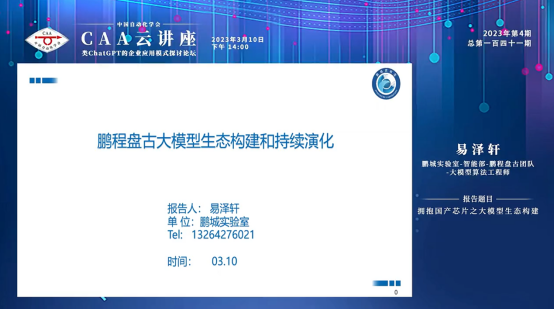 鵬城實驗室智能部的鵬程盤古團隊的大模型算法工程師易澤軒作報告