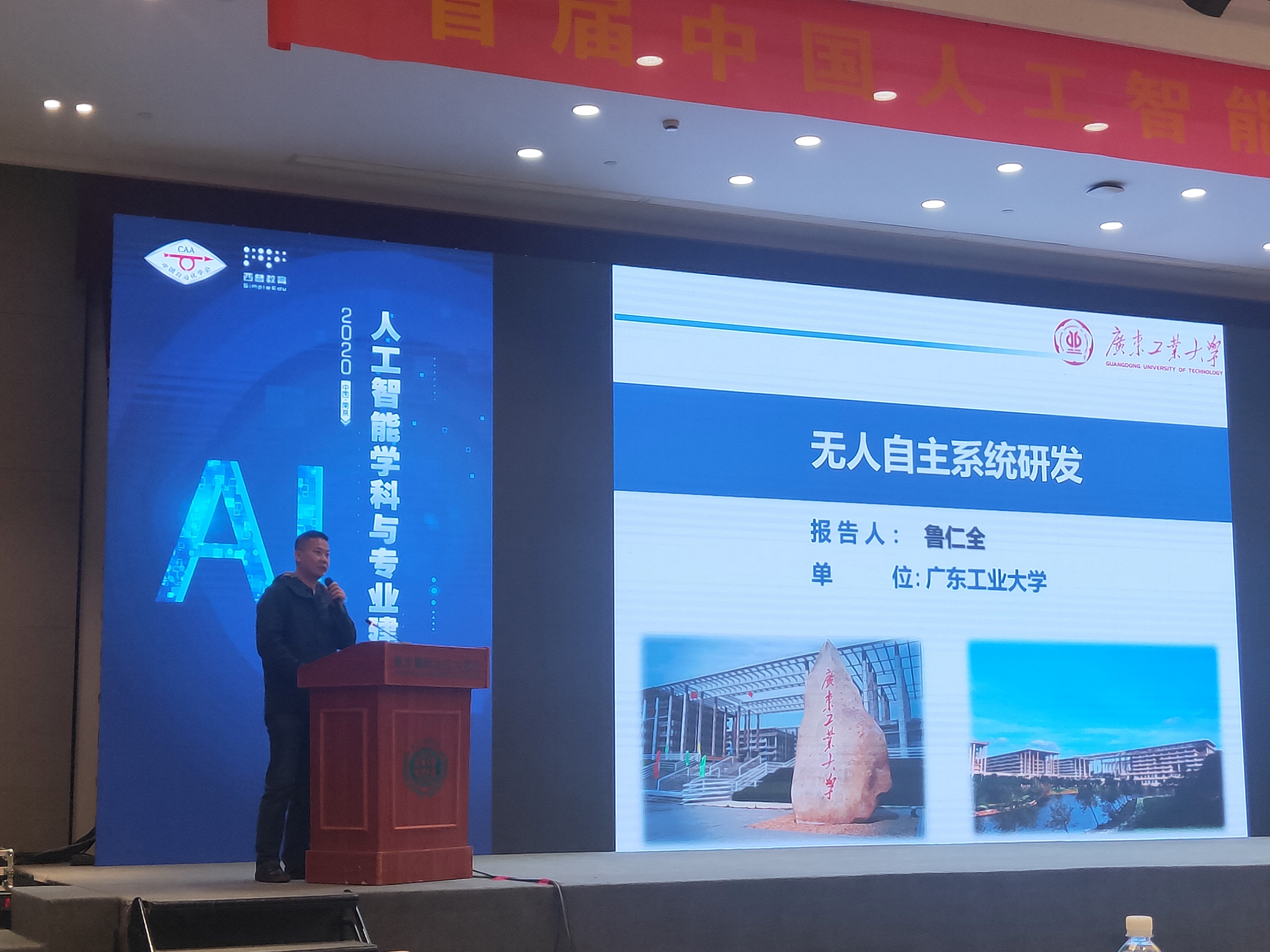廣東工業大學科技與人文研究院院長魯仁全教授作了題為“多智能體控制理論及應用”的報告。在移動互聯網、大數據等新理論技術以及經濟社會發展強烈需求的共同驅動下,人工智能加速發展,呈現出深度學習、跨界融合、人機協同、群智開放、自主操控等新特征。多智能體系統是多個相互作用的智能自主體通過網絡拓撲結構進行信息交換,并且以協同方式來完成一項工作任務。其廣泛應用于智能工廠、智能物流、智能碼頭等領域,是人工智能的研究熱點。報告從研究背景與意義、領導者不可靠群智控制、基于事件驅動群智控制、智能無人車應用成果、智能無人機應用成果等方面展開,對智能決策與協同控制研究所近期的理論與應用研究工作做了簡要介紹。