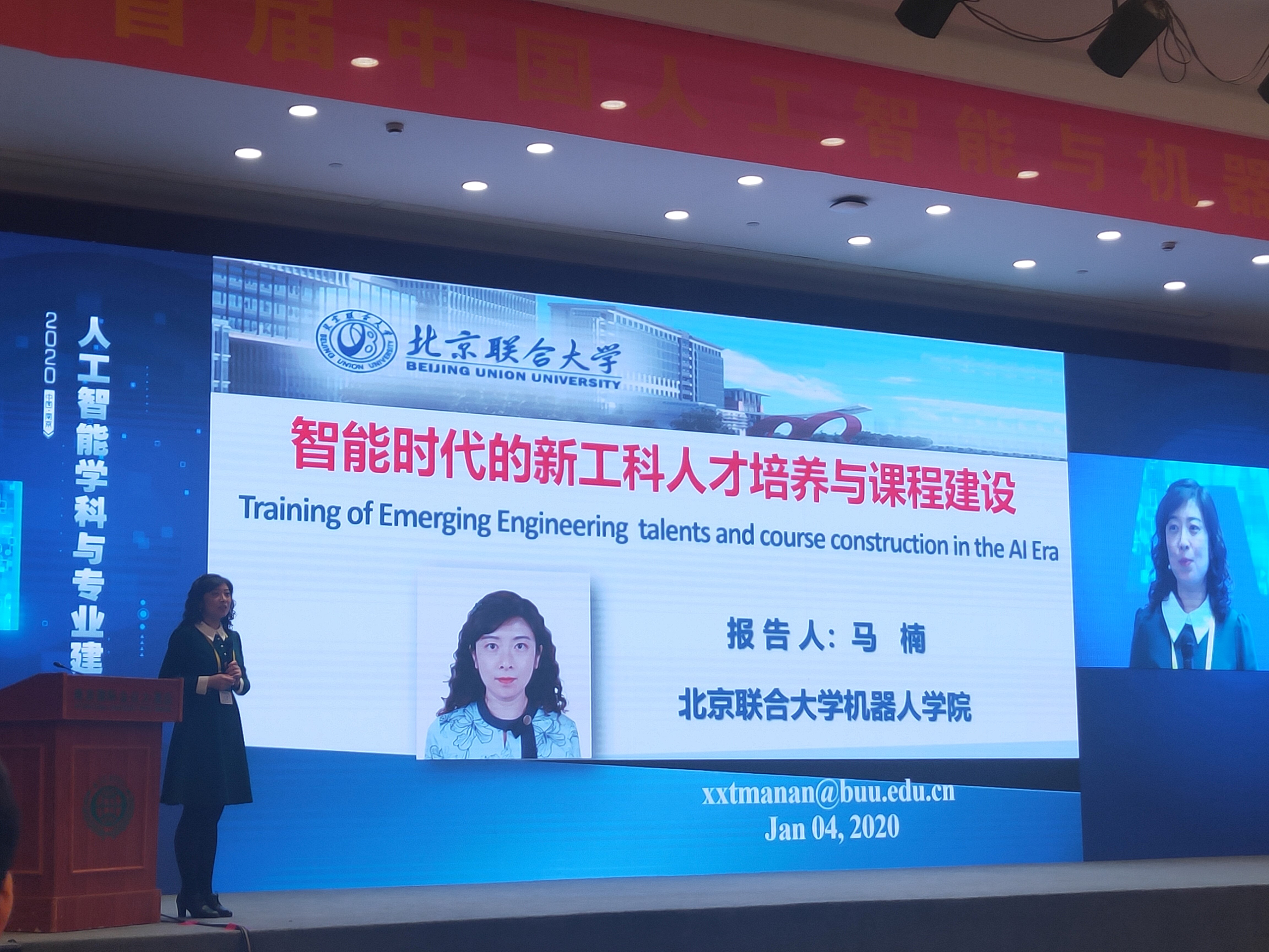 北京聯合大學機器人學院副院長、北京市中青年骨干教師、中國人工智能學會智能交互專委會副秘書長馬楠教授介紹了智能時代的新工科人才培養與課程建設。面對以人工智能、大數據等前沿技術為代表的新一輪科技革命和產業變革,人類正逐步進入智能時代。高等教育作為我國躋身全球創新型國家前列和建設經濟強國的重要抓手,是中國2030年成為人工智能強國的重要基礎。新工科建設基于國家戰略發展新需求,適應國際競爭新形勢,通過對高等教育的變革和人才培養模式的創新,去培養能夠更好推動經濟社會發展的現代科技人才。報告從智能時代的教育特點、新工科人才培養體系探索、專業課程建設、產學研深度融合協同育人等方面進行重點闡述。