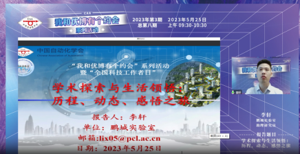 2023年第3期,總第八期“我和優(yōu)博有個約會”講座于2023年05月25日下午成功召開,鵬城實驗室李軒助理研究員作題為“學(xué)術(shù)探索與生活領(lǐng)悟:歷程、動態(tài)、感悟之旅”的報告。