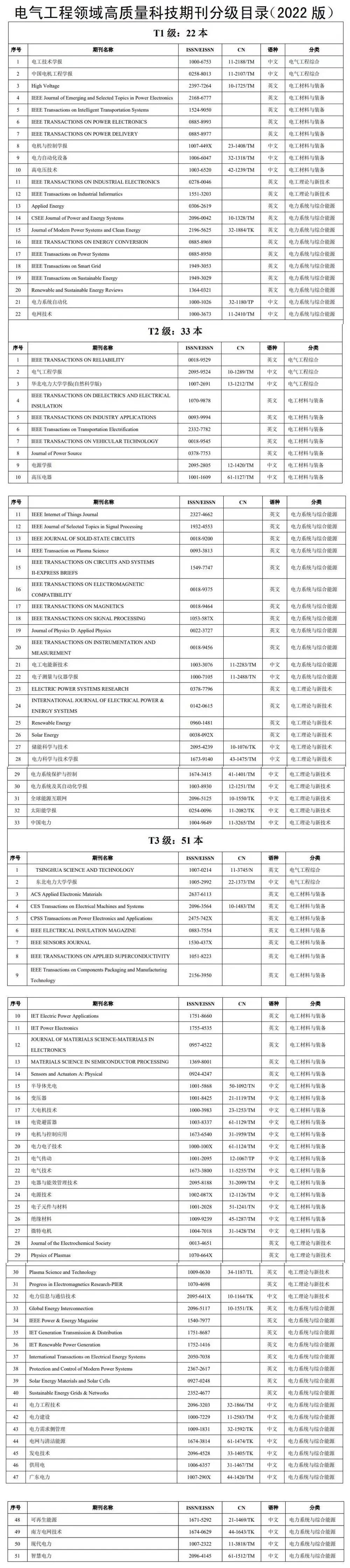 近日,電氣工程領域高質量科技期刊分級目錄(2022版)已正式發布,《電氣傳動》成功入選。