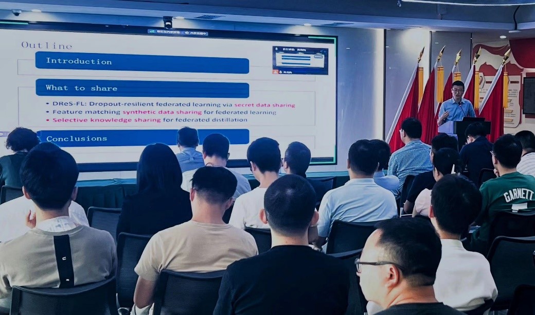 張軍教授圍繞“對聯邦學習中信息分享的再思考”進行分享。首先強調了聯邦學習在打破數據孤島、保障隱私安全、推動人工智能發展方面的關鍵作用。詳細討論了模型共享、合成數據及知識共享等三種聯邦學習信息共享模式在效能、通信成本與隱私泄露風險方面的局限性。并針對這些挑戰提出了針對性的優化方法,為聯邦技術的發展提供了新思路。