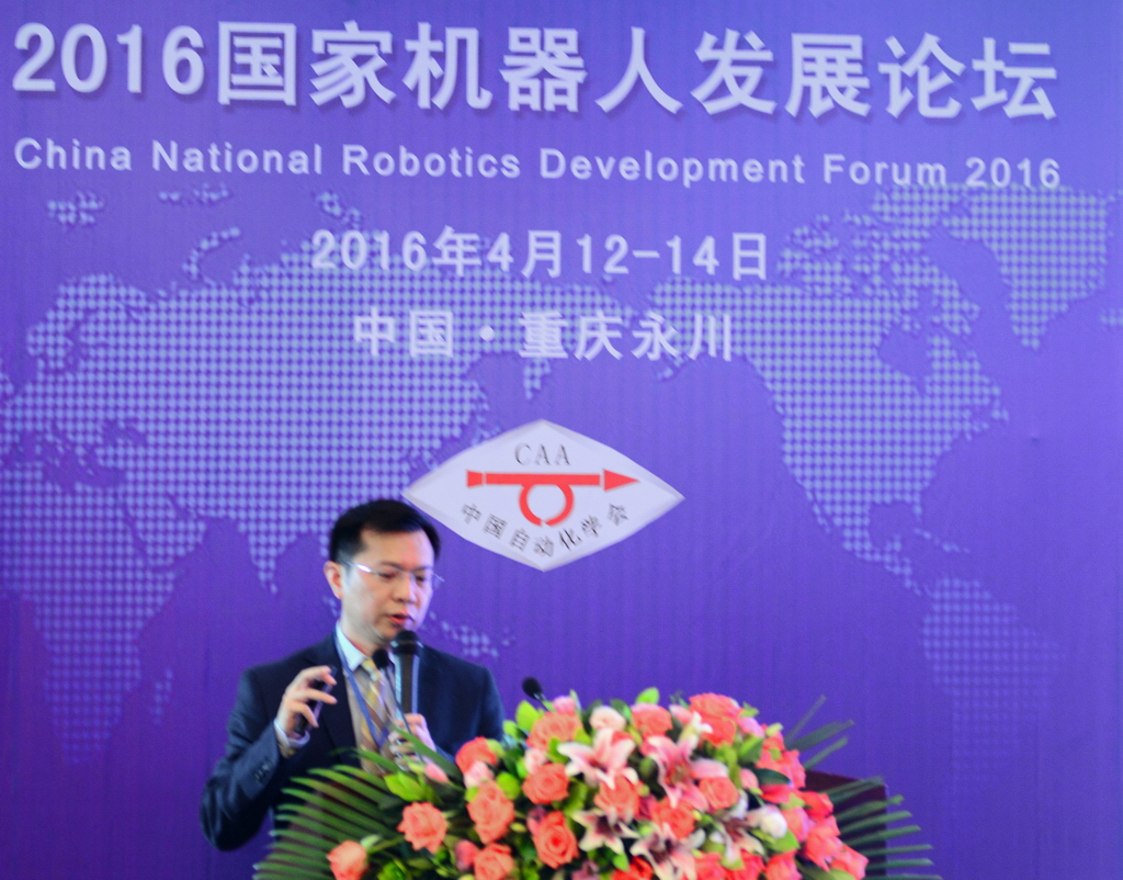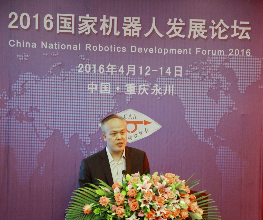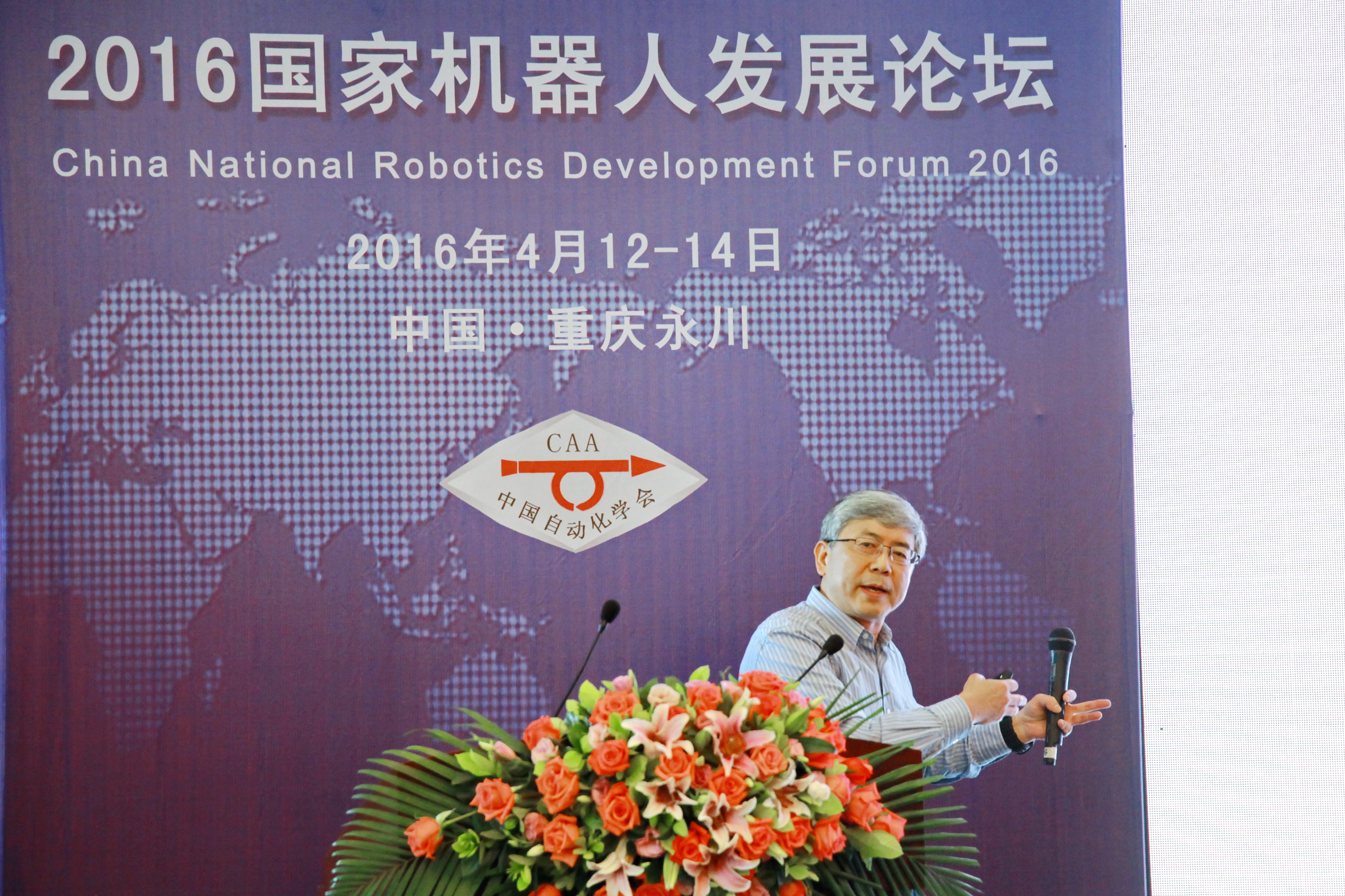 為促進智能機器人基礎理論研究、成果原始創新和高技術開發,增強我國智能機器人自主研發水平和工業基礎能力,推動其在智能制造、智慧生活、智能產業和國防安全領域的深入應用,助力產業轉型升級。由中國自動化學會、重慶市科學技術學會和重慶市永川區人民政府聯合主辦的“2016國家機器人發展論壇”于2016年4月13-14日在重慶江鴻國際大飯店隆重召開。本次大會安排了6個特邀主旨報告、23個分會場報告和機器人應用及產業展示,匯聚了來自科研院所、高等院校、領袖企業的負責人、院士、學術界和工業界代表400余人,會議規模宏大,現場座無虛席,反響熱烈。