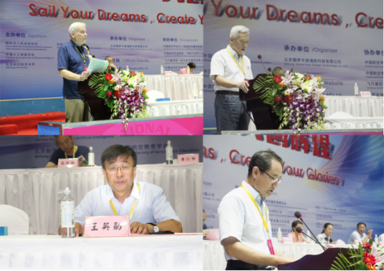 經過8月25日的技術答辯環節后,8月26日,來自國際亞太地區的13支高校參賽隊、134名運動員、裁判員和嘉賓匯聚北京航空航天大學體育館參加了開幕式。中國航空學會常務理事張聚恩研究員、大賽發起人美國喬治亞理工大學Robert C.Michelson教授、中國人工智能學會常務副理事長楊放春教授分別致辭。中國航空學會名譽理事長劉高倬研究員、北航校長助理王榮橋教授、中國航空學會名譽理事魏鋼將軍、北航自動化學院院長呂金虎教授、北航無人系統研究院院長王英勛教授等出席了開幕式。開幕式后進行了精彩的無人機集群編隊表演。