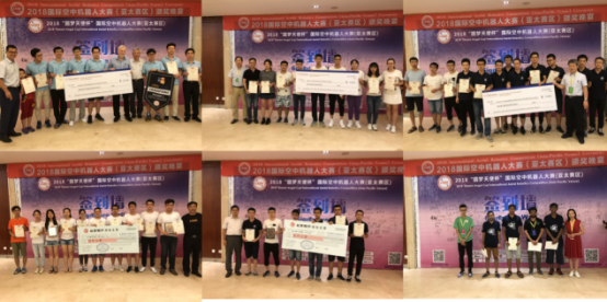 經過激烈角逐今年以浙江大學對為代表的一些優秀團隊獲得了歷史性突破,其中浙江大學隊ZMART團隊獲得了2018年第七代任務年度冠軍并獲得20000美金的冠軍獎金,廈門大學白鷺隊獲得了2018年度第二名并獲得6000美元獎金,哈爾濱工業大學HITCSC團隊獲得了年度第三名并獲得4000美元獎金,北京航空航天大學馭遠-X隊獲得了最佳系統控制獎,南京航空航天大學代表向陽而生隊獲得了最佳系統導航獎,中國民航大學Civil Drone隊獲得了系統設計獎,中山大學空中機器人隊獲得創新設計獎,寧夏大學Eagle eye隊獲得最佳進步獎,印度斯坦大學-KCG技術學院代表隊獲得團隊文化獎。