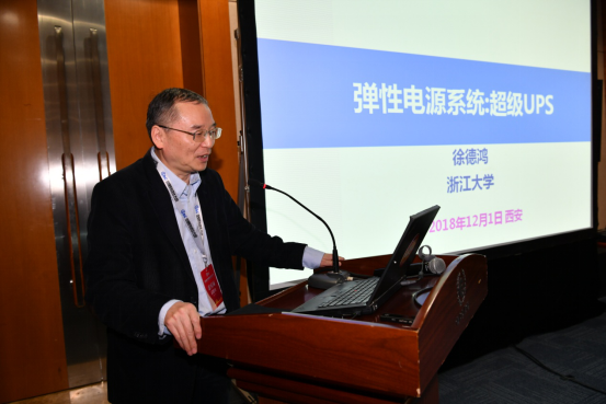 浙江大學的徐德鴻教授作了題為“彈性電源系統:超級UPS”的專題報告,徐德鴻教授指出電源系統的可靠性是生命線,而傳統不間斷電源(UPS)存在可靠性的隱患。隨后徐德鴻教授提出了彈性電源系統概念,由傳統不間斷電源(UPS)升級的超級UPS具有三個特征:采用電網和天燃氣兩種能源供應線,采用電池和燃料電池兩種儲能,采用電力電子冗余架構。徐德鴻教授介紹了超級UPS的結構,系統設計思路、模塊化功率變換單元設計、故障隔離和保護。