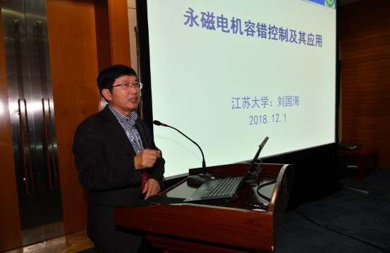 江蘇大學劉國海教授作了題為“永磁電機容錯控制及其應用”的專題報告,劉國海教授針對電動車輛的需求,闡述矩角逼近型永磁電機、高可靠性容錯電機設計和容錯控制方法;為了獲得高動態和快響應,設計了針對單電機系統、多電機系統以及四驅系統的高性能控制器;將電機驅動系統視為整車的執行機構,提出保障整車行駛的穩定性和安全性的控制技術。進一步應用到智能農業裝備中。