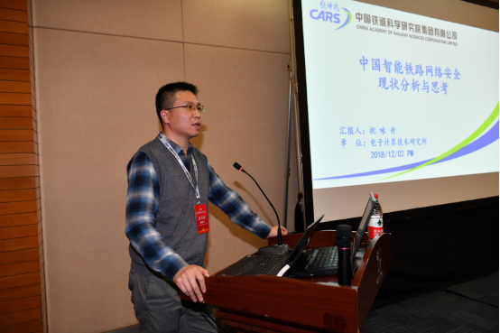 鐵科院電子計算技術研究所祝詠升副研究員介紹了中國智能鐵路網絡安全的現狀。主要從四個方面做出了分析,分別是:1.智能鐵路網絡安全現狀及技術發展趨勢;2.智能鐵路網絡安全存在的突出問題及原因分析;3.智能鐵路網絡安全工作思路;4.智能鐵路網絡安全一體化解決方案。