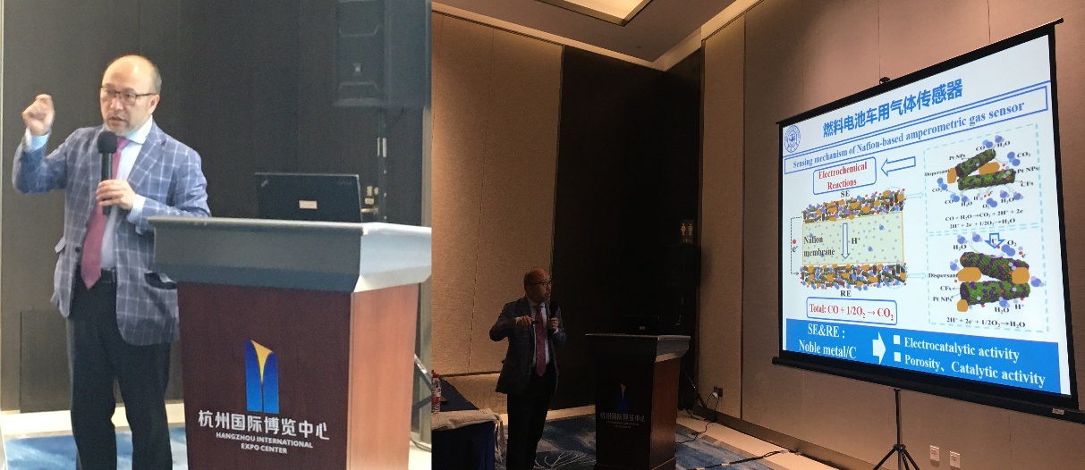 國家杰出青年基金獲得者,吉林大學盧革宇教授針對《汽車傳感器的構建》,做了專題報告。報告針對氣體傳感器在燃油車排氣污染物處理與監控、燃料電池汽車燃料品質監控以及H2安全管理等重要應用,從傳感材料設計與制備、器件的結構設計與實現、傳感機理研究以及傳感系統構筑等方面進行探討。重點介紹基于穩定氧化鋯的混成電位型NOx傳感器、基于NAFION的CO電流型傳感器和微結構H2傳感器。