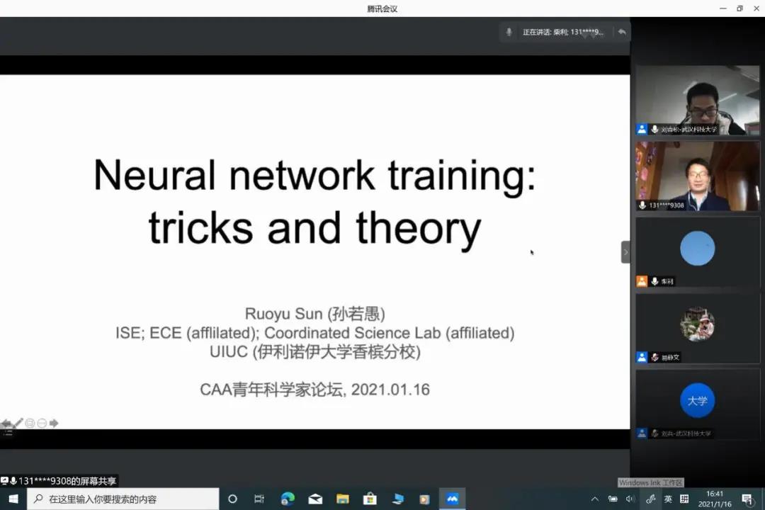 伊利諾伊大學香檳分校孫若愚教授在題為“神經網絡的訓練技巧和原理”的報告中回顧了訓練網絡的一些關鍵技巧,包括初始化、正則化、寬網絡等,并介紹了學術界在過去兩年對這些技巧的一些研究,包括其團隊最近對寬網絡的幾何性質的一些研究結果。