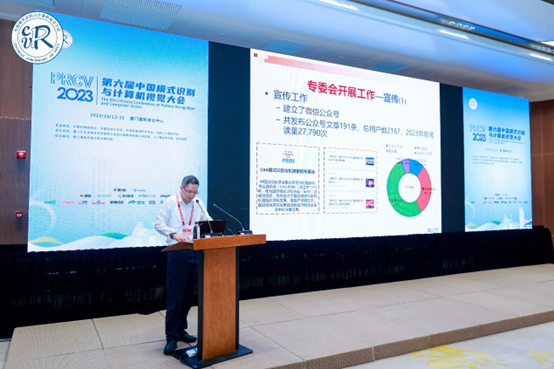 劉成林主任總結了專委會在過去一年中的工作情況:共同組織了中國模式識別與計算機視覺大會,為專業領域的學者提供了一個重要的交流平臺;共舉辦了4期模式識別前沿論壇,邀請了各個領域的專家學者進行報告,促進了前沿科研的交流與合作;結合最新研究趨勢,舉辦了多模態人工智能前沿技術講習班,為研究人員提供了學習和研究的機會;定期發布專委會通訊,2023年已出版3期簡報,及時傳達了專委會工作和行業新進展;持續使用微信公眾號進行宣傳,共發表信息191條,閱讀量超27萬次;完成了5期專家訪談,并在專委通訊發布,提高了專委會的知名度和影響力;舉辦4次專委會科普活動,讓更多的普通大眾和中小學生了解人工智能和模式識別,為普及科學知識和促進科學普及做出了積極貢獻。