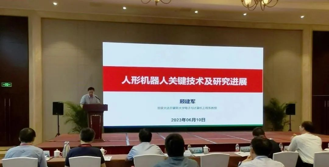 開幕式后是大會報告環節。加拿大工程學院院士、加拿大達爾豪斯大學顧建軍教授作了題為“人形機器人關鍵技術及研究進展”的報告,介紹了當前人型機器人研究的背景和對不同的時間段的較出名的人型機器人進行點評,指出了人型機器人發展中的瓶頸及核心技術的難點,分享了國內一些實驗室的人型機器人的研究成果并對未來機器人的發展做出展望。