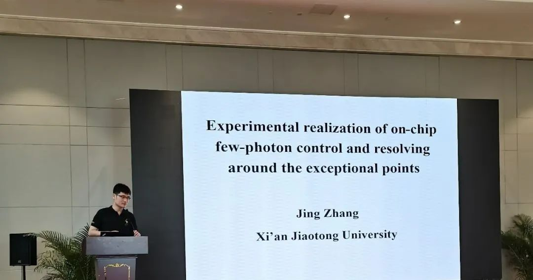 西安交通大學張靖教授作了題為“Experimental realization of on-chip few-photon control and resolving around the exceptional points”的報告,指出使用非厄米片上超導量子電路可以使得即使在少光子狀態下也可以實現單向微波傳輸。