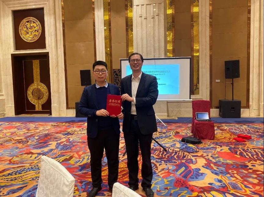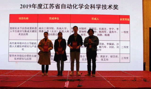 本次會議經審稿錄用90篇論文,并將分別推薦到《南京理工大學學報》、《江蘇科技大學學報》、《江蘇大學學報》、《揚州大學學報》雜志和英國IET出版社發表。會議還評選出了最佳理論論文和最佳應用論文各1篇。最佳論文頒獎儀式由大會評獎委員會主席南京理工大學鄒云教授主持,學會常務理事南京理工大學徐勝元教授和學會常務理事兼副秘書長江南大學劉飛教授分別向最佳理論論文和最佳應用論文作者頒發了獎狀。最佳理論論文由南京航空航天大學趙振華、曹東、張朋共同署名的論文“基于滑模觀測器的四旋翼無人機全回路解耦控制”獲得,最佳應用論文由南京理工大學邱博、單梁、常路、王志強、屈藝共同署名的論文“基于改進人工勢場法雙向規劃的雙機械臂避碰路徑規劃”獲得。