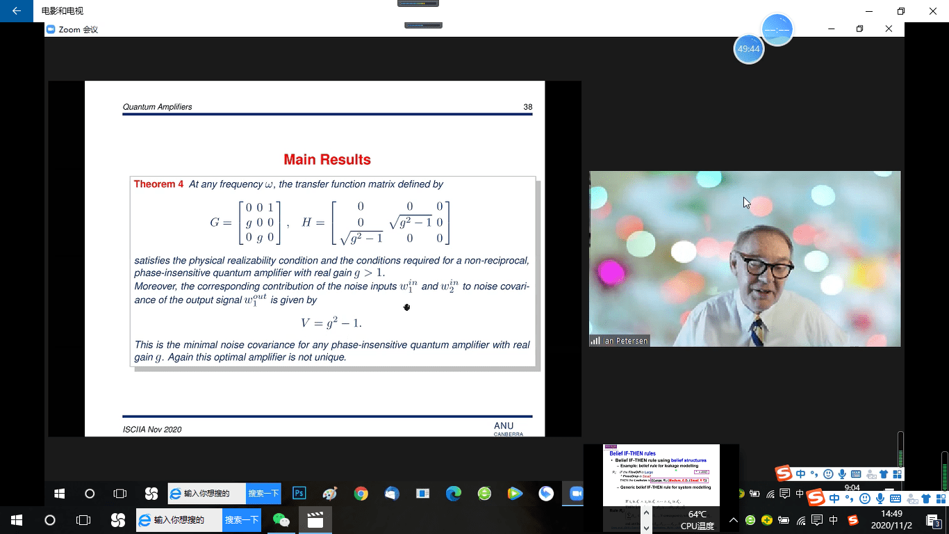 Ian Petersen教授做“Synthesis of Minimum Noise Non-Reciprocal and Phase-Insensitive Quantum Amplifiers”報告