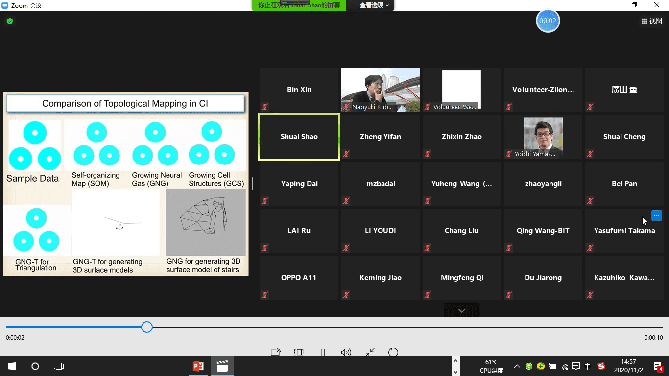 會議共安排了4個線上分論壇和14組報告,主題包括信號處理、智能信息處理與學習、機器人、模糊智能優化與應用、計算智能等。線上線下參會人員就各自感興趣的學術問題與各位報告人進行了深入的討論與交流,現場氣氛十分熱烈。
