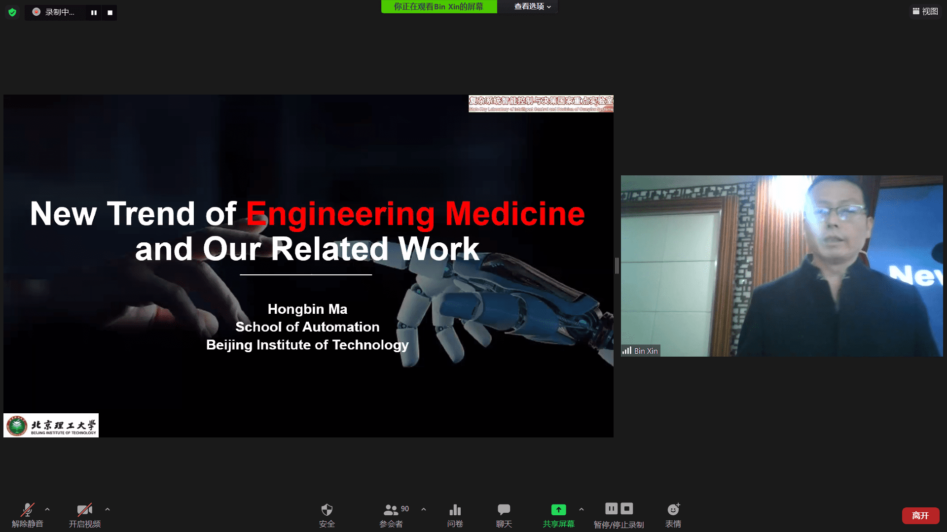 會議開幕式于11月1日上午舉行,由國家優秀青年科學基金獲得者、北京理工大學自動化學院辛斌教授主持。北京自動化學會副理事長張朝暉教授,北京理工大學國際交流合作處處長劉向東教授、自動化學院院長夏元清教授出席大會并致辭。大會主席辛斌教授代表ISCIIA2020組委會歡迎和感謝參會學者,并匯報了會議的有關情況,介紹了ISCIIA的錄用流程及評審標準。本屆會議收到了大量投稿,經過嚴格評審,會議錄用論文71篇。