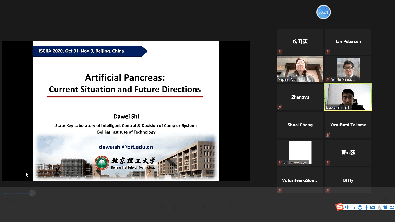 本屆會議邀請到五位國際知名學者Witold Pedrycz教授、Tongwen Chen教授、Michael Tse教授、Ian Petersen教授、Koichi Shimizu教授做主題演講。五位學者分別就多視圖模型的優化、復雜工業過程智能報警監控、新冠病毒傳播的模型與預測、量子放大器的合成、醫學成像方面的最新研究成果作了深入交流。